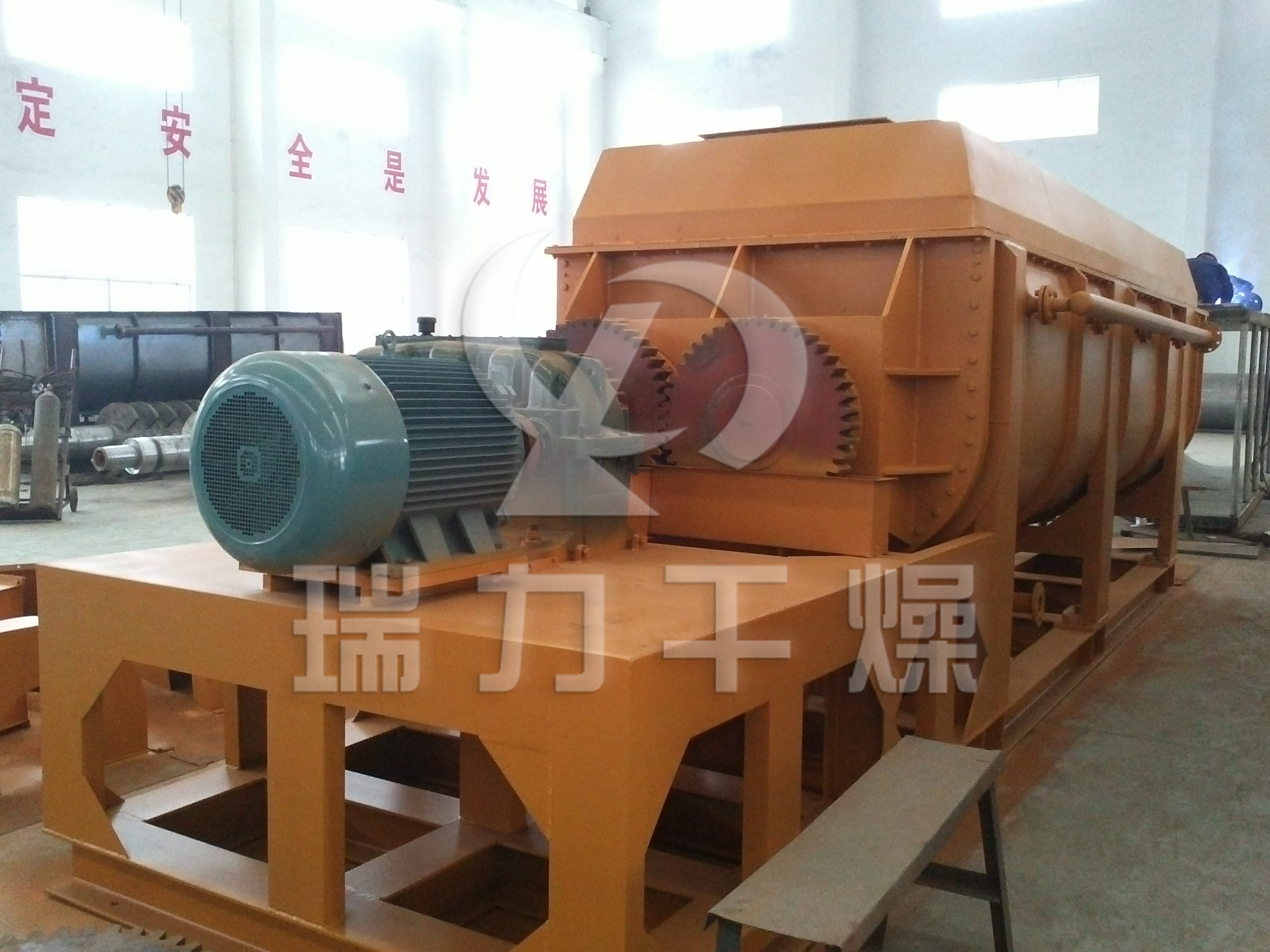 用導(dǎo)熱油做熱介質(zhì),槳葉干燥機(jī)可完成低溫煅燒工作。如:二水硫酸鈣(Ca2SO4?2H2O)煅燒轉(zhuǎn)化為半水硫酸鈣(Ca2SO4?1/2H2O)。碳酸氫鈉(NaHCO3)經(jīng)煅燒 轉(zhuǎn)化為純堿(Na2CO3)等。