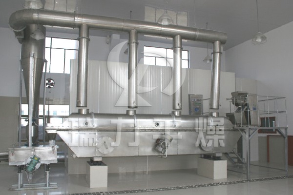 案例描述:磷酸二氫鉀專用流化床干燥機(jī)的物料自進(jìn)料進(jìn)口進(jìn)入機(jī)內(nèi),在振動(dòng)力作用下,物料沿水平面流化床拋擲,向前連續(xù)運(yùn)動(dòng),熱風(fēng)向上穿過流化床同濕物料換熱后,濕空氣經(jīng)旋風(fēng)分離器除塵后由排風(fēng)1:3排出.干燥物料由排料進(jìn)口排出。