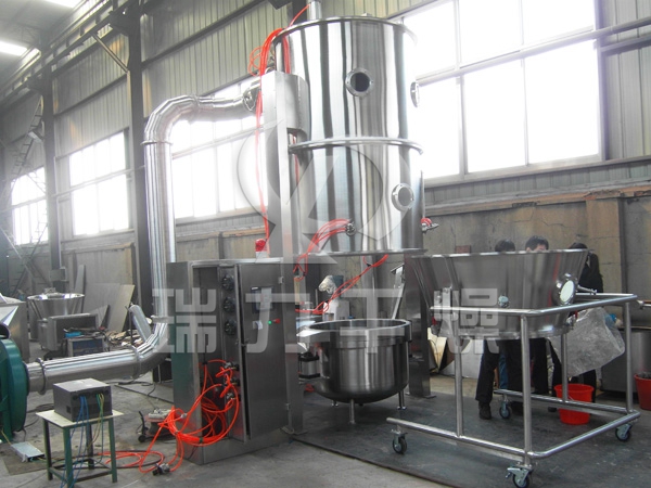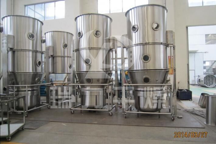 沸騰制粒機(jī)又稱一步造粒機(jī),它是利用粘合劑的粘結(jié)作用,固體粉末間相互架橋、團(tuán)聚,從而逐漸形成顆粒。