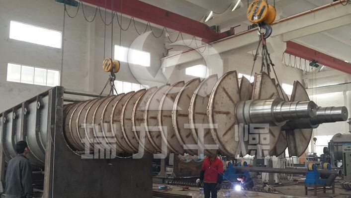 漿葉干燥機已成功地用于食品、化工、石化、染料、工業(yè)污泥等領(lǐng)域。設(shè)備傳熱、冷卻、攪拌的特性使之可以完成以下單元操作:燃燒(低溫)、冷卻、干燥(溶劑回收)加熱(融化)、反應和滅菌。攪拌漿葉同時又是傳熱面,使單位有效容積內(nèi)傳熱面積增大,縮短了處理時間。楔型漿葉傳熱面又具有自清潔功能。壓縮--膨脹攪拌功能使物料混和均勻。物料沿軸向成'活塞流'運動,在軸向區(qū)間內(nèi),物料的溫度、濕度、混合度梯度很小。用導熱油做熱介質(zhì)漿葉干燥機可完成低溫燃燒工作。如:二水硫酸鈣(Ca2SO4·2H2O) 燃燒轉(zhuǎn)化為半水硫酸鈣(Ca2SO4·1/22H2O)。碳酸氫鈉(NaHCO3)經(jīng)煅燒轉(zhuǎn)化為純堿(Na2HCO3)等。通入冷卻介質(zhì),如水、冷卻鹽水等即可用來冷卻。如:使用于純堿行業(yè)的漿葉式?jīng)鰤A機,取代老式的空氣冷卻涼堿機,節(jié)省了能源及尾氣處理設(shè)備,降低了操作費用。干燥,設(shè)備最主要的功能,不使用熱空氣,使溶劑回收、能源消耗、環(huán)境控制處于易處理的理想狀態(tài)。對需回收溶劑、易燃易氧化熱敏性物料尤為適應。已廣泛用于精細化工、石化、染料行業(yè)。軸向區(qū)間內(nèi),溫度、濕度、混合度的均勻性,使得設(shè)備可用來加熱或融化,或進行一些固體物料反應。在復合肥及變性淀粉行業(yè)均已成功使用。漿葉干燥機可用來對食物和面粉進行滅菌處理。單位有效容積內(nèi)大的加熱面積,很快就將物料加熱到滅菌溫度,避免了長時間加熱而改變物料品質(zhì)。