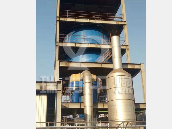 本機(jī)組工作過(guò)程為:料液通過(guò)隔膜泵高壓輸入,噴出霧狀液滴,然后同熱空氣并流下降,大部分粉粒由塔底排料口收集,廢氣及其微小粉末經(jīng)旋風(fēng)分離器分離,廢氣由抽風(fēng)機(jī)排出,粉末由設(shè)在旋風(fēng)分離器下的收粉筒收集,風(fēng)機(jī)出口處還可裝備二級(jí)除塵裝置,回收率在96%-98%。