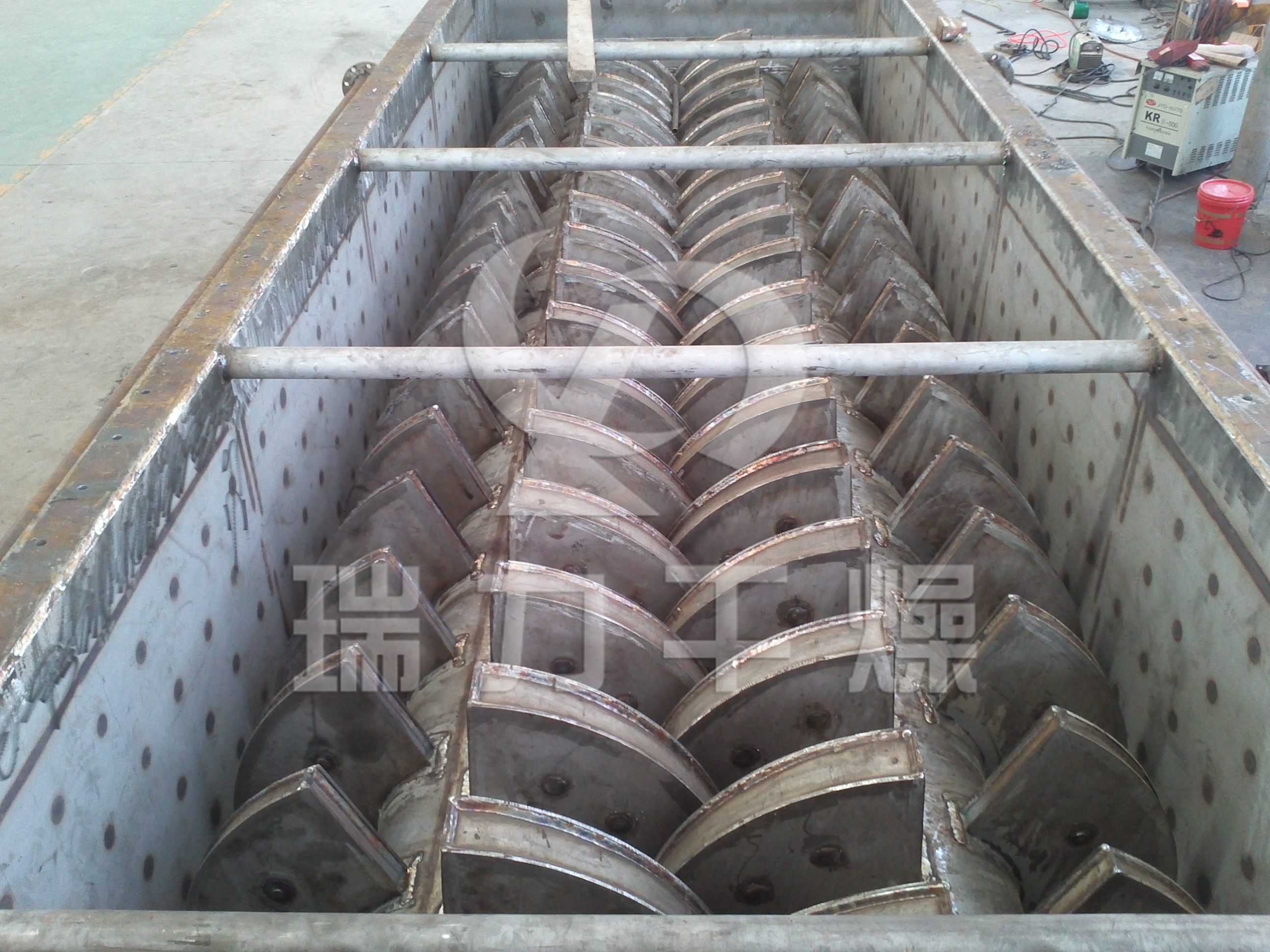 漿葉干燥機(jī)已成功地用于食品、化工、石化、染料、工業(yè)污泥等領(lǐng)域。設(shè)備傳熱、冷卻、攪拌的特性使之可以完成以下單元操作:燃燒(低溫)、冷卻、干燥(溶劑回收)加熱(融化)、反應(yīng)和滅菌。攪拌漿葉同時(shí)又是傳熱面,使單位有效容積內(nèi)傳熱面積增大,縮短了處理時(shí)間。楔型漿葉傳熱面又具有自清潔功能。壓縮--膨脹攪拌功能使物料混和均勻。物料沿軸向成'活塞流'運(yùn)動(dòng),在軸向區(qū)間內(nèi),物料的溫度、濕度、混合度梯度很小。用導(dǎo)熱油做熱介質(zhì)漿葉干燥機(jī)可完成低溫燃燒工作。如:二水硫酸鈣(Ca2SO4·2H2O) 燃燒轉(zhuǎn)化為半水硫酸鈣(Ca2SO4·1/22H2O)。碳酸氫鈉(NaHCO3)經(jīng)煅燒轉(zhuǎn)化為純堿(Na2HCO3)等。通入冷卻介質(zhì),如水、冷卻鹽水等即可用來冷卻。如:使用于純堿行業(yè)的漿葉式?jīng)鰤A機(jī),取代老式的空氣冷卻涼堿機(jī),節(jié)省了能源及尾氣處理設(shè)備,降低了操作費(fèi)用。干燥,設(shè)備最主要的功能,不使用熱空氣,使溶劑回收、能源消耗、環(huán)境控制處于易處理的理想狀態(tài)。對(duì)需回收溶劑、易燃易氧化熱敏性物料尤為適應(yīng)。已廣泛用于精細(xì)化工、石化、染料行業(yè)。軸向區(qū)間內(nèi),溫度、濕度、混合度的均勻性,使得設(shè)備可用來加熱或融化,或進(jìn)行一些固體物料反應(yīng)。在復(fù)合肥及變性淀粉行業(yè)均已成功使用。漿葉干燥機(jī)可用來對(duì)食物和面粉進(jìn)行滅菌處理。單位有效容積內(nèi)大的加熱面積,很快就將物料加熱到滅菌溫度,避免了長時(shí)間加熱而改變物料品質(zhì)。安裝結(jié)構(gòu)示意圖技術(shù)規(guī)格